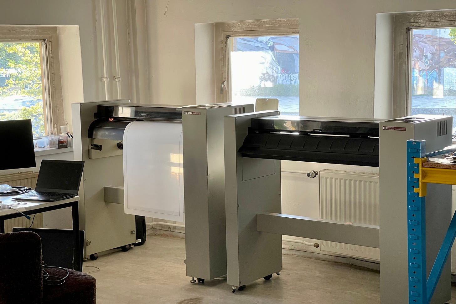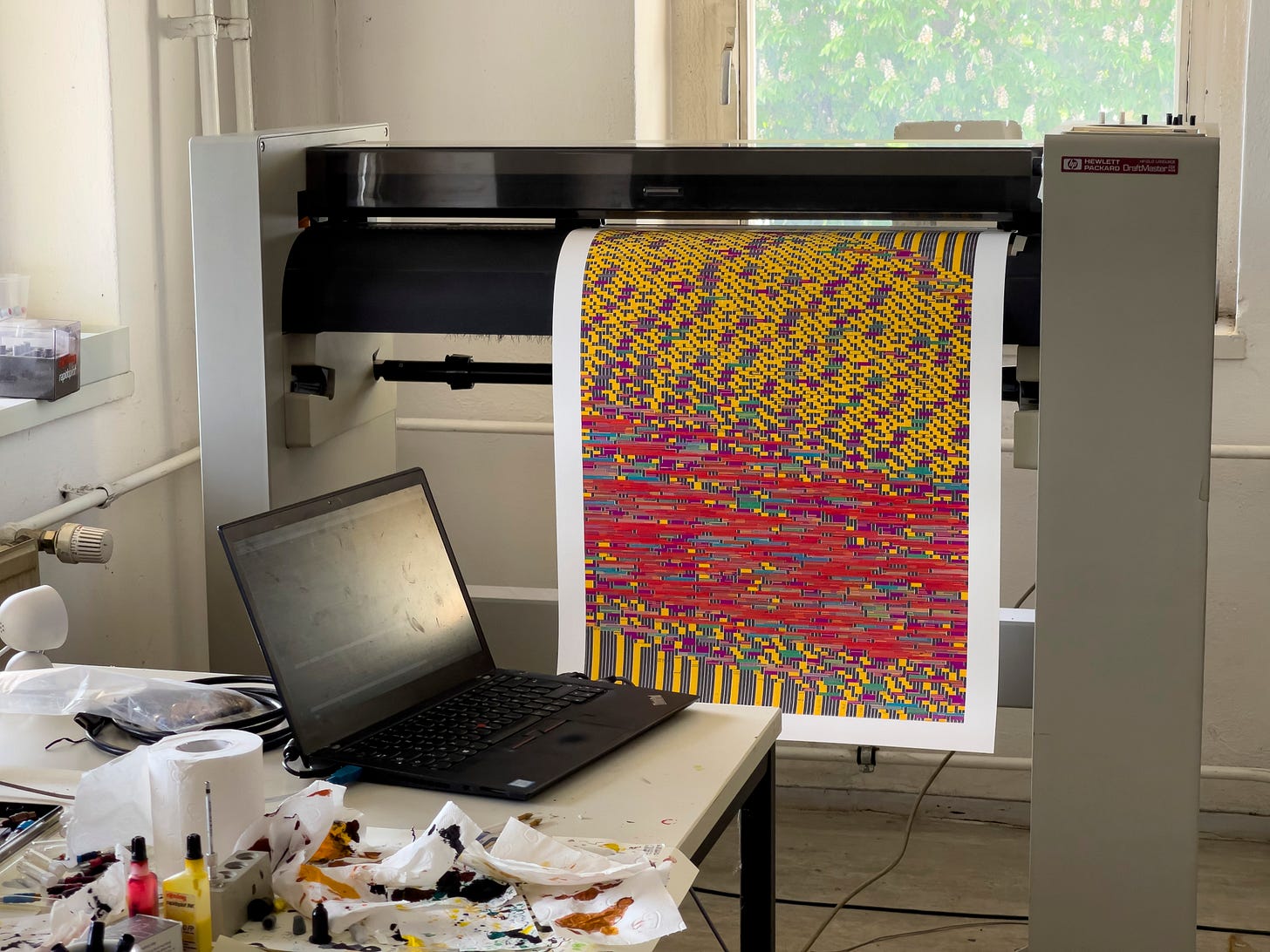 I was thinking about doing some kind of plotter residency. Yeah. That idea has not left my head for some time - This was on my mind because there are like more than 30 machines and we are all hanging out there and like working on machines with friends together!