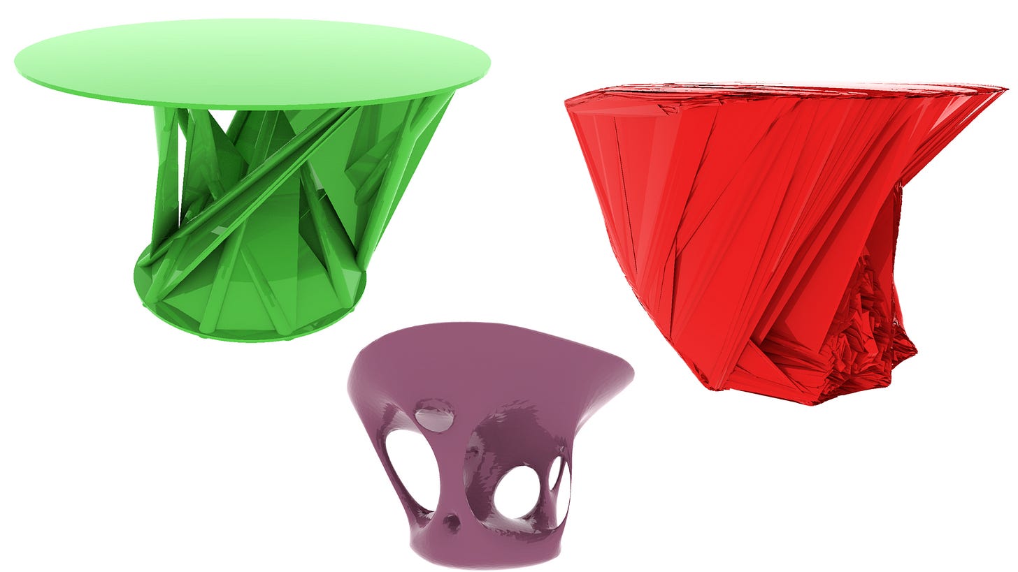 The inspiration for that series came from the motivation to bring the digital into the physical; 3d printing only recently became more available during that time, and I wanted to create generative furniture.
